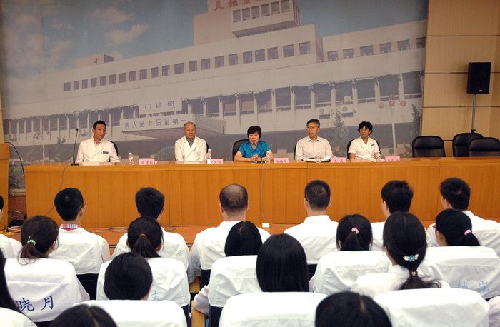 最后,首都医科大学线福华副校长讲话,对新生寄予厚望,并提出三点要求:希望同学们尽快完成角色转变,适应新的学习工作环境,并为第五临床医学院的发展贡献力量;希望同学们尽快完成学习方式的转变,注重临床与科研协调发展,实践与探索并重,积极自觉地在服务中提高学习质量;强调同学们注重医学职业精神的培养,将对病人的关爱体现在日常学习工作中。