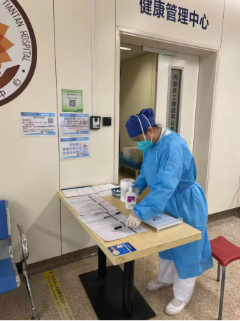 按照医院的防控要求,进入体检中心需要出示健康宝和行程码,为了解决老年人的手机困难症,以及保证疫情期间不聚集,护士长特意安排两组相对年轻的导医在两个入口处协助退休老同志进行查验健康码的工作。此外,往年体检,有的老同志们早上7点不到就来了,今年在门诊二部四层的健康管理中心入口,增设了几组一米线相隔的等候椅供大家休息。既做到了防疫不放松,又让我们的服务更有温度。