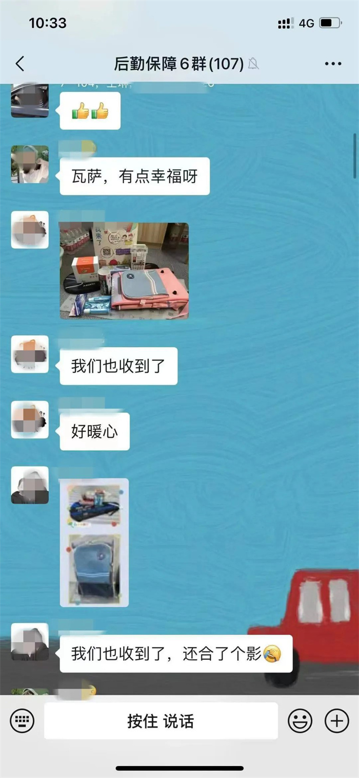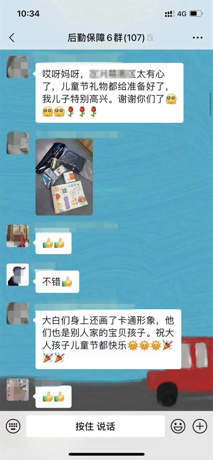 一大早,正在某隔离点集中隔离的小朋友们就收到了“大白”送来的“六一”礼物:漂亮的书包和文具套装。“小朋友,咱们暂时住在这里,可别忘了学习哟。”“大白”叮嘱孩子们,而孩子们更开心的,是辨认“大白”画在身上的卡通人物。