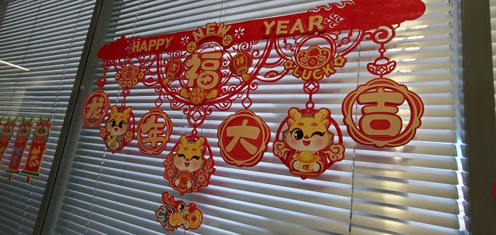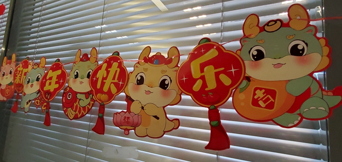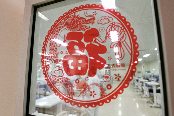 农历除夕,北京天坛医院里到处是浓浓的年味。在候诊大厅,在门诊,在病房,医护人员们精心准备了灯笼、春联、窗花,还有各种俏皮灵动的小龙。“过年了,希望我们的布置能给患者和家属们带来家的感觉,让患者舒心、顺心是我们最大的心愿。”他们说。