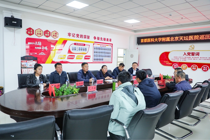10月10日,医疗队一行驱车5小时,来到太仆寺旗,受到当地政府和卫生健康部门的热情欢迎。在巡回医疗启动仪式暨巡回医疗座谈会上,锡林郭勒盟卫生健康委员会党组书记、主任郑贵军,太仆寺旗人民政府副旗长乌云其其格等在致辞中对北京天坛医院多年来对当地的帮扶表示感谢,并希望医院能够留下一支“带不走的医疗队”,持续帮助当地提升诊疗水平和服务能力。北京天坛医院医务处副处长单凯对当地政府多年来对医疗队和帮扶医生的关心照顾表示感谢,对即将开展巡回医疗工作的队员提出希望和要求。随后,已经在太仆寺旗人民医院开展一年对口帮扶工作的超声科主任医师张蕾、呼吸内科副主任医师林隆分享了自己一年来在当地工作的心得,以及进一步帮助当地开展新技术、新项目的想法。此次国家巡回医疗队队长亢卫波代表全体队员表态,将全身心投入巡回医疗工作,把“天坛标准”的优质医疗服务带给基层百姓。随后,双方就基层医疗需求、诊疗技术提升、学科建设等方面进行深入探讨。