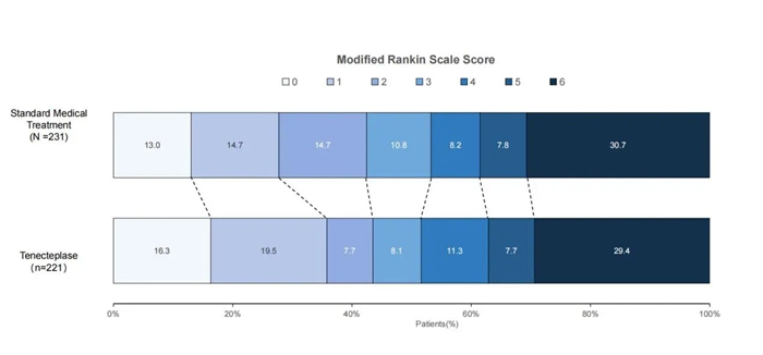 这就意味着,发病后24小时内基底动脉闭塞的急性缺血性卒中患者,使用替奈普酶静脉溶栓可降低残疾率,且并不增加死亡率及症状性颅内出血风险。该研究为基底动脉闭塞患者提供了晚时间窗静脉溶栓治疗新方案,试验中对照组允许使用阿替普酶,并且两组均可接受血管内治疗,这一设计真实反映了临床实践。同时,患者无需通过高级影像筛选,进一步增强了治疗方案的推广可行性。