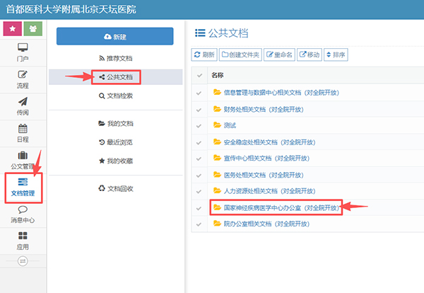 下载需登录医院OA系统,左侧栏目点击“文档管理”-“公共文档”,点击“国家神经疾病医学中心办公室”文件夹,内有对应材料可供下载。